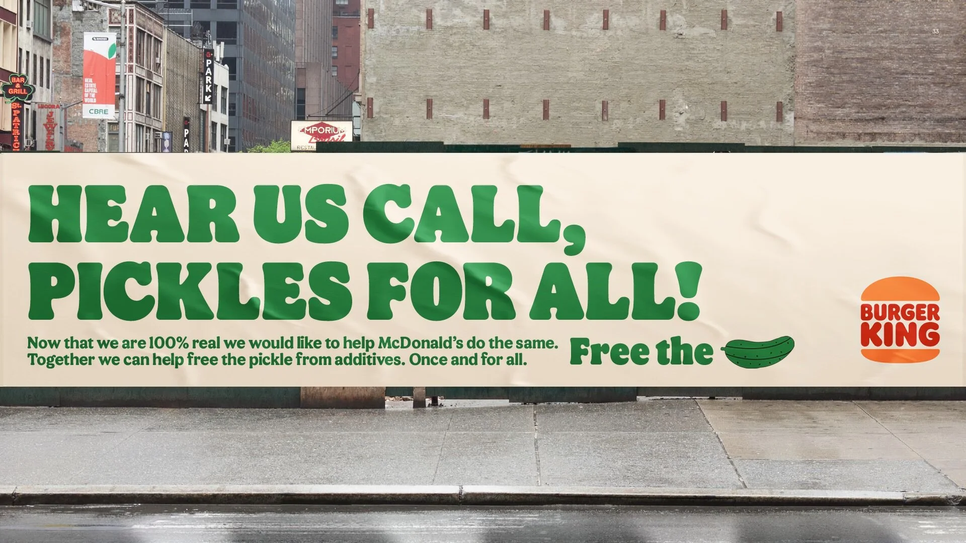 To prove Burger King is all about real food we make a campaign to raise additive free pickles for the less fortunate: McDonald’s.