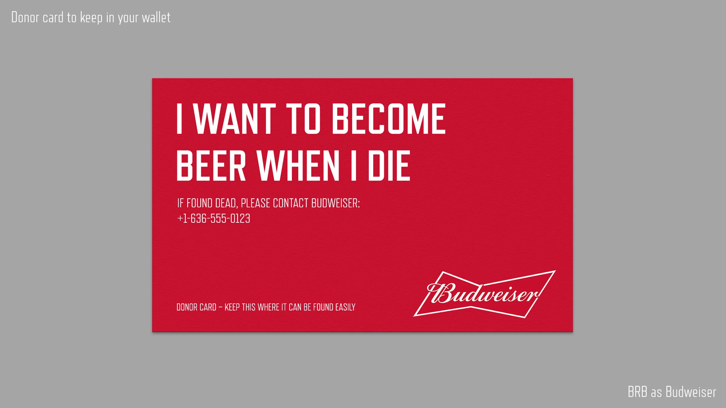 What if we told you life doesn’t have to end just because you die? What if we told you you could become a Budweiser in your next life? Because that’s what we’re telling you, right now.